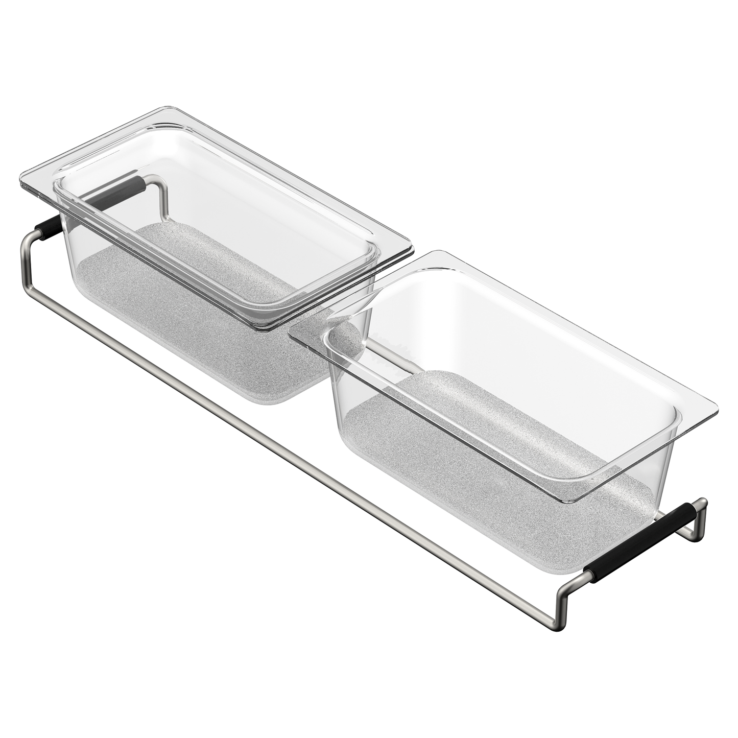 Moen’s acrylic prep bins with clear lids that fit on Luxe Chef™ Workstation System Sinks help declutter the kitchen sink area when preparing meals. The two (2) prep bins and matching lids provide immediate access to garnishes, toppings and other food items and can be easily stored for additional organization. Plus, the clear plastic material makes it seamless to identify foods in the refrigerator. The sink accessories are made of BPA-free plastic and durable for everyday use. The bins and lids are easy to clean and wipe down and are dishwasher-safe, making cleanup a breeze.