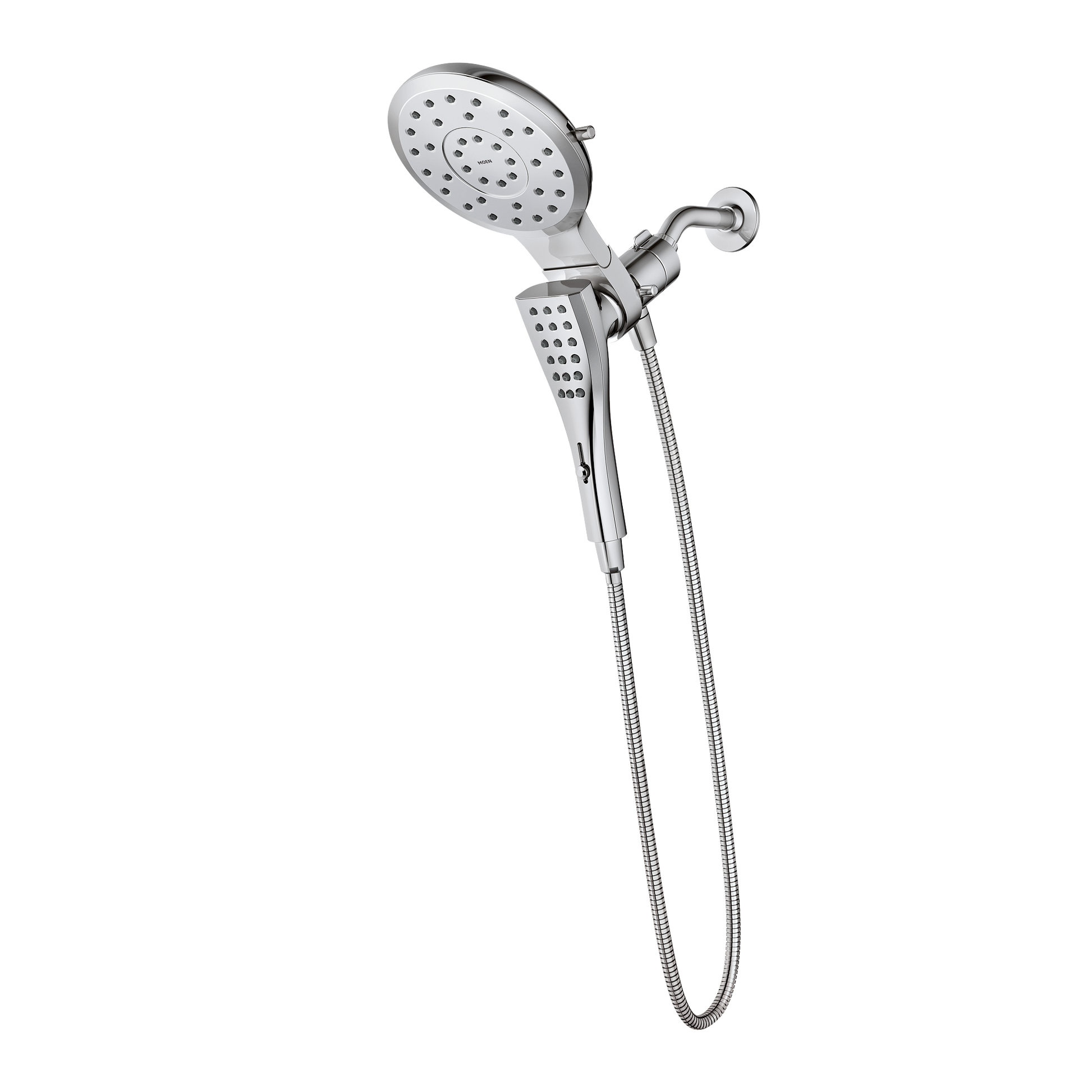 The Verso™ Combination Shower featuring Infiniti™ dial offers both a rainshower and handshower in one sleek design while providing a customized shower experience. The new Infiniti dial featured on both showerheads provides unlimited spray and coverage options so you can find the perfect shower to meet your needs. Simply slide the dial to seamlessly switch between spray modes with no pause in experience. The rainshower showerhead also can pivot for more shower spray angle options. The Combination Shower provides a 3-in-1 design. The rainshower and handshower can each run separately or together for a customized experience. For added convenience, the handshower includes Moen’s Magnetix® technology that includes a powerful magnetic dock for easy release of the handshower and a secure snap back into place – even when eyes are closed.