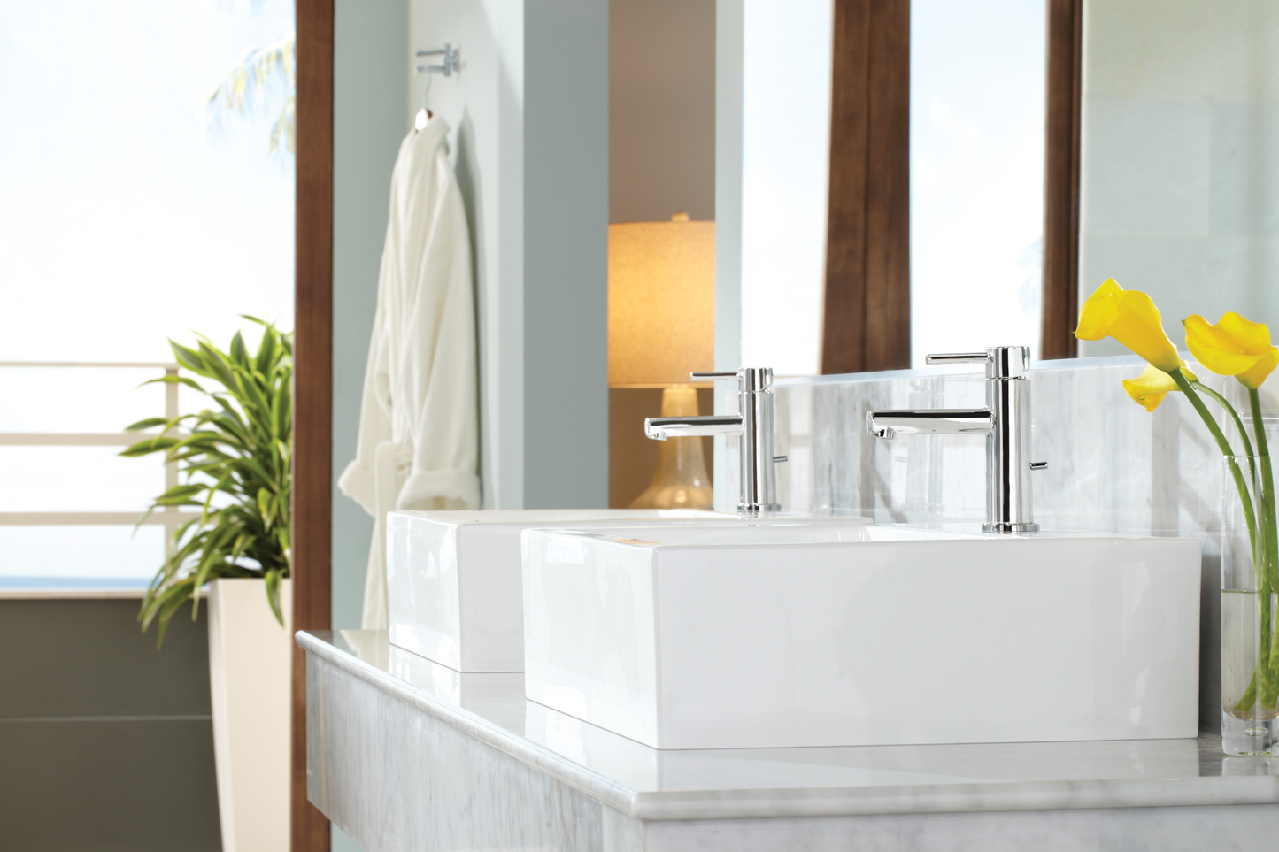Align faucets and accessories bring a refreshed Modern look to your home. Use them in large master baths or small powder rooms. The simple lines and contemporary style are beautiful. A full line of coordinating products is available to complete the look of your bath. The clear laminar stream produces a beautiful water presentation.
