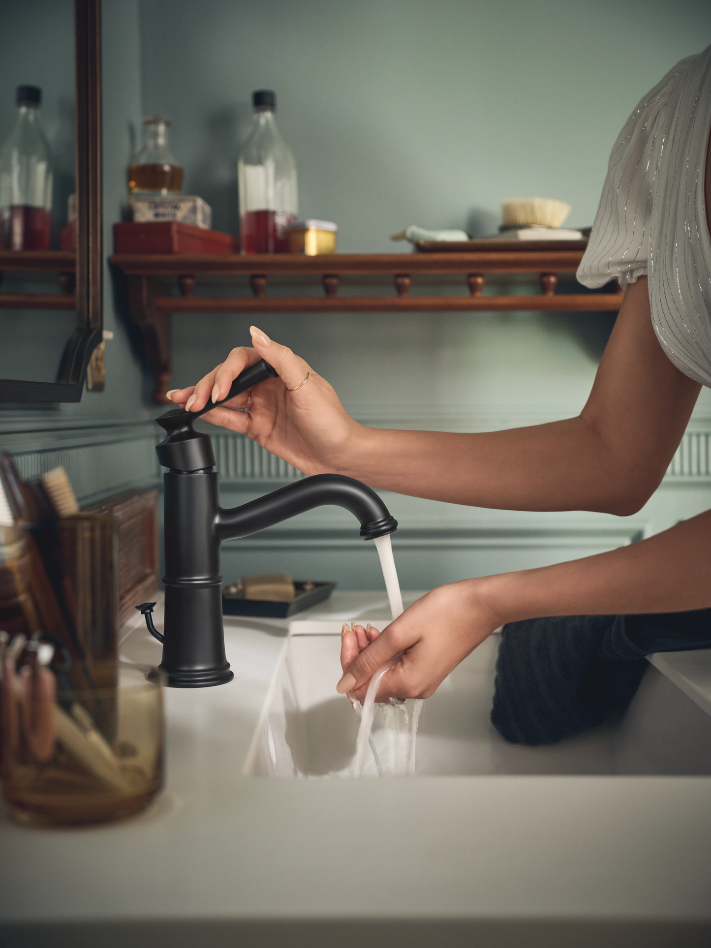 Williamsburg-era details and intricate design cues give each Belfield faucet a timeless look, while multiple handle and finish options add a distinctly personalized touch to the Traditional styling.