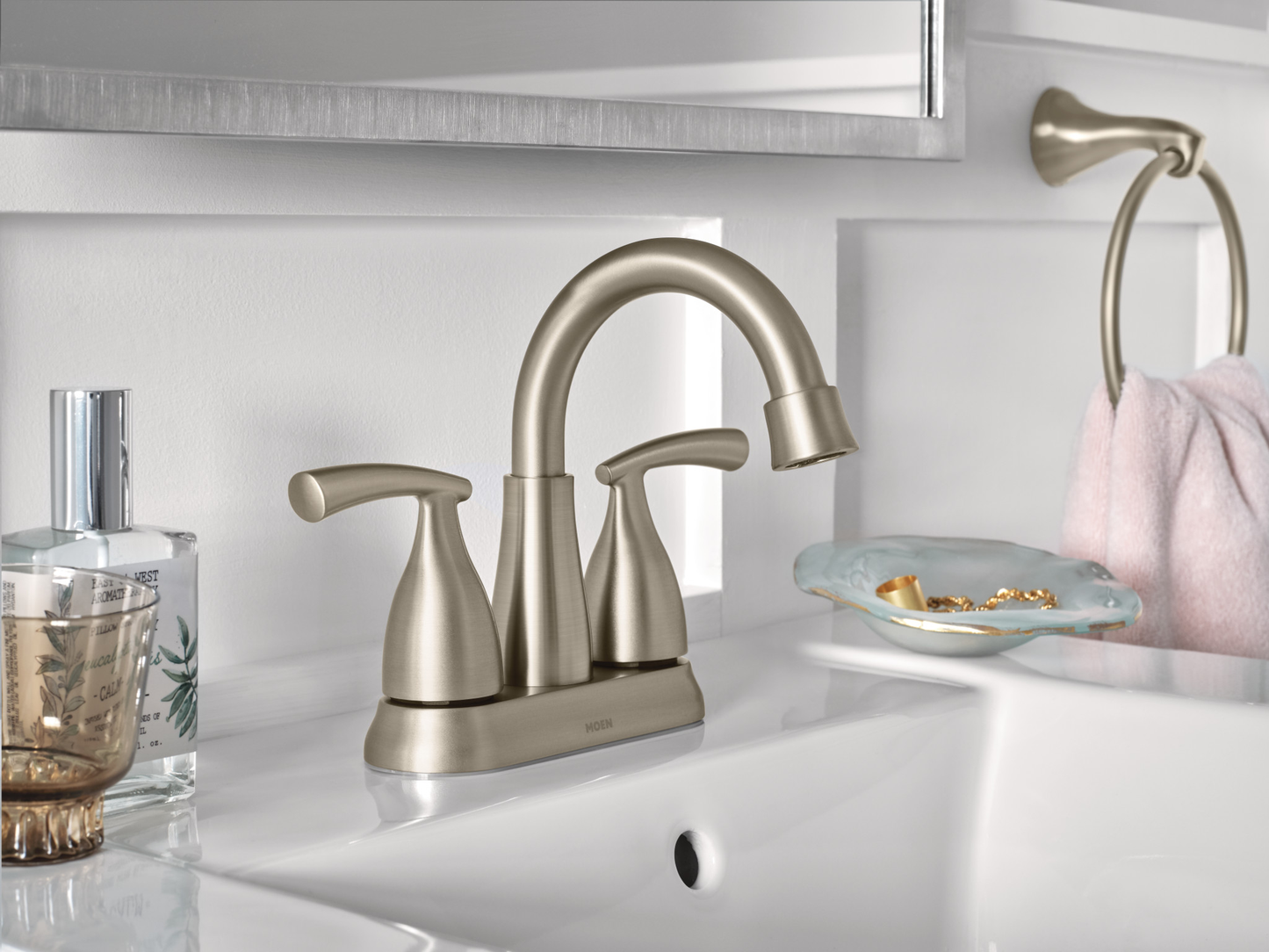 The Transitional styling of the Essie collection offers delicate curves that make any bath feel like home. The spot resist finish prevents build-up of water spots and fingerprints to provide a cleaner looking faucet. Elegantly simple, the Essie collection's graceful curves and contours flow as beautifully as the faucet's water stream, creating a Transitional style that spans a variety of decorating trends.