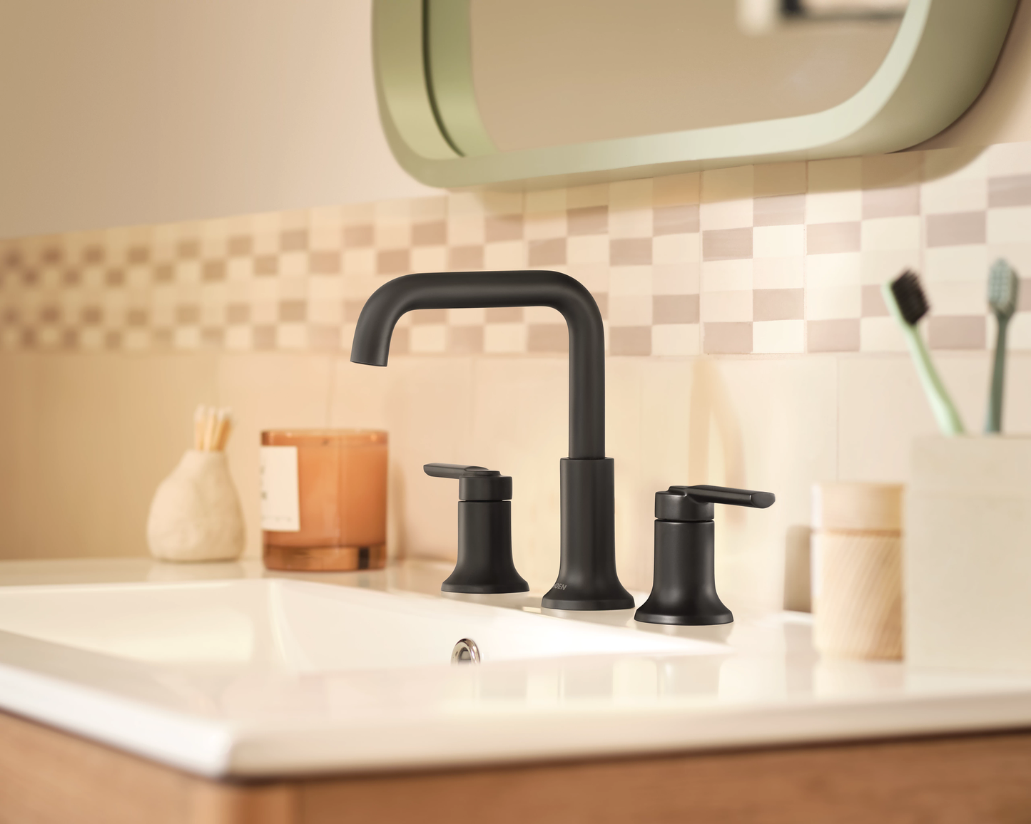 The Zyla™ two-handle widespread bathroom faucet boasts a unique industrial yet transitional aesthetic through its bent tube spout and softened, flat handles. With its clean lines and tapered form, this faucet blends perfectly with any space, effortlessly adding a touch of modernity to the bathroom. Plus, its widespread design allows for increased installation flexibility. It’s available in Chrome, a polished, reflective finish offering cool tones that meld with any design aesthetic.
