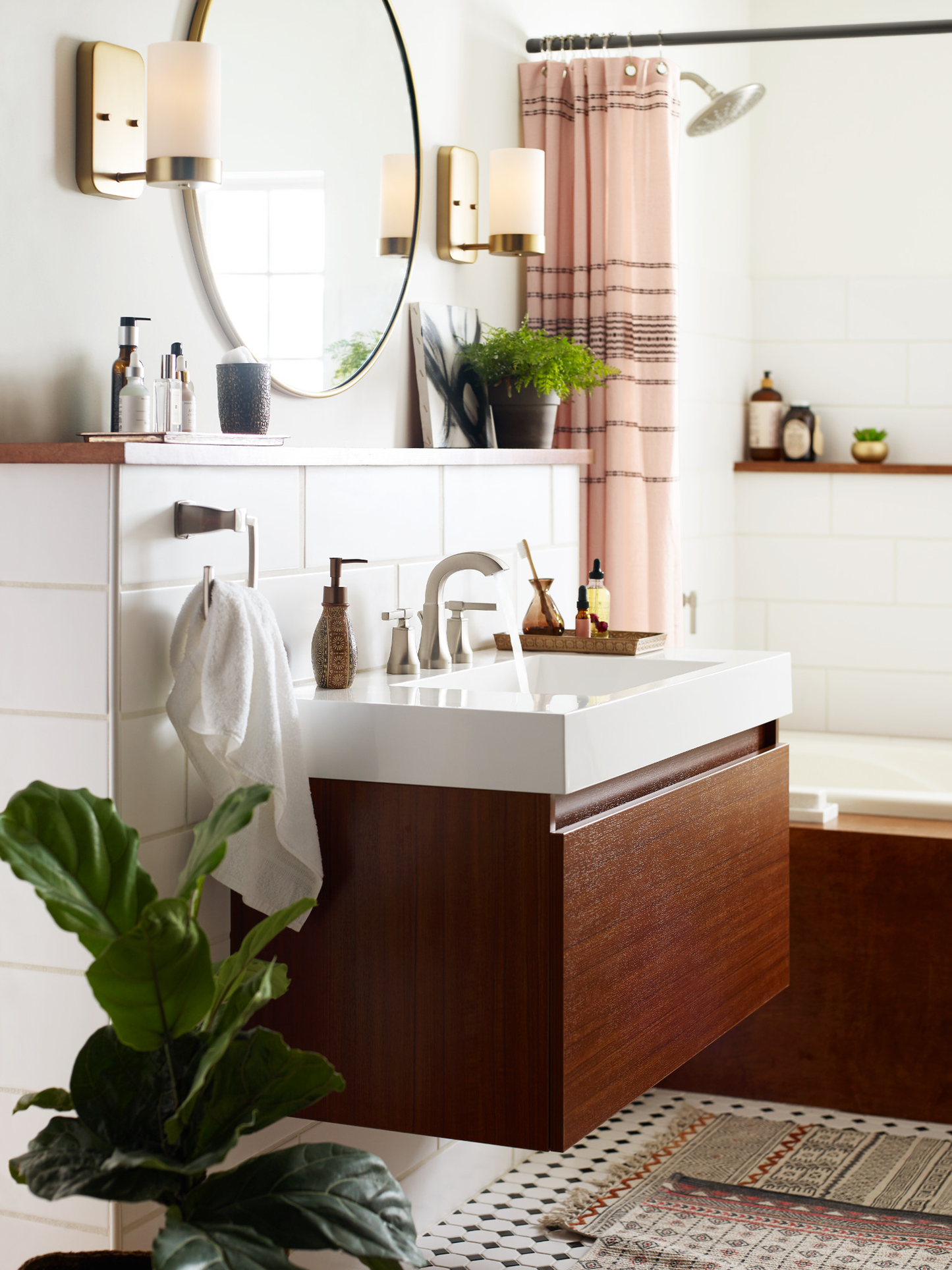 Angular-inspired shapes with soft, curved edges give the Ayda suite a renewed Traditional style. A matching tub/shower is available to complete the look of your bath. This innovative Spot Resist finish resists fingerprints and water spots to maintain the brilliance of the original finish and easily wipes cleans.