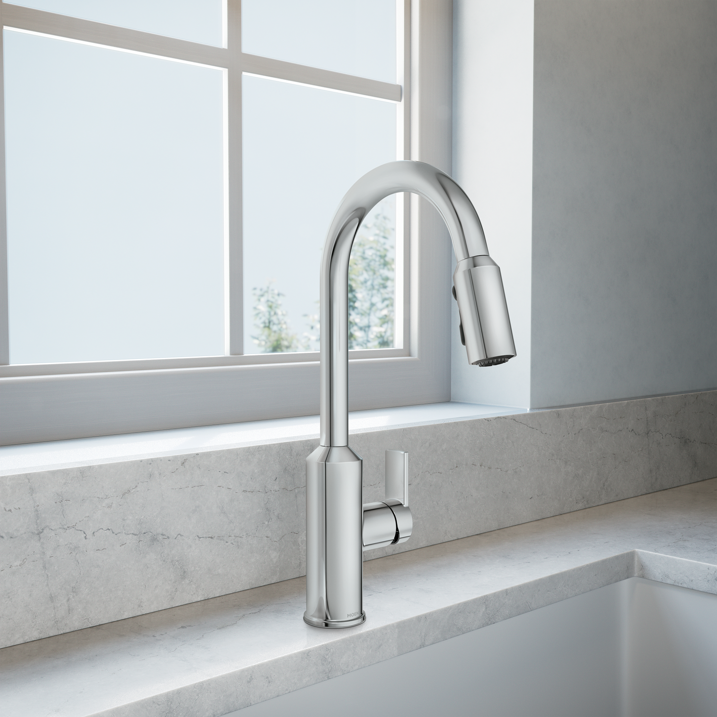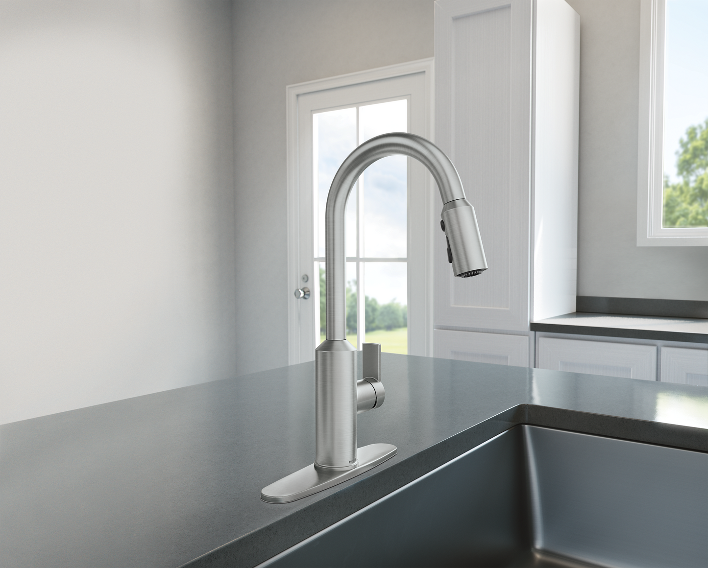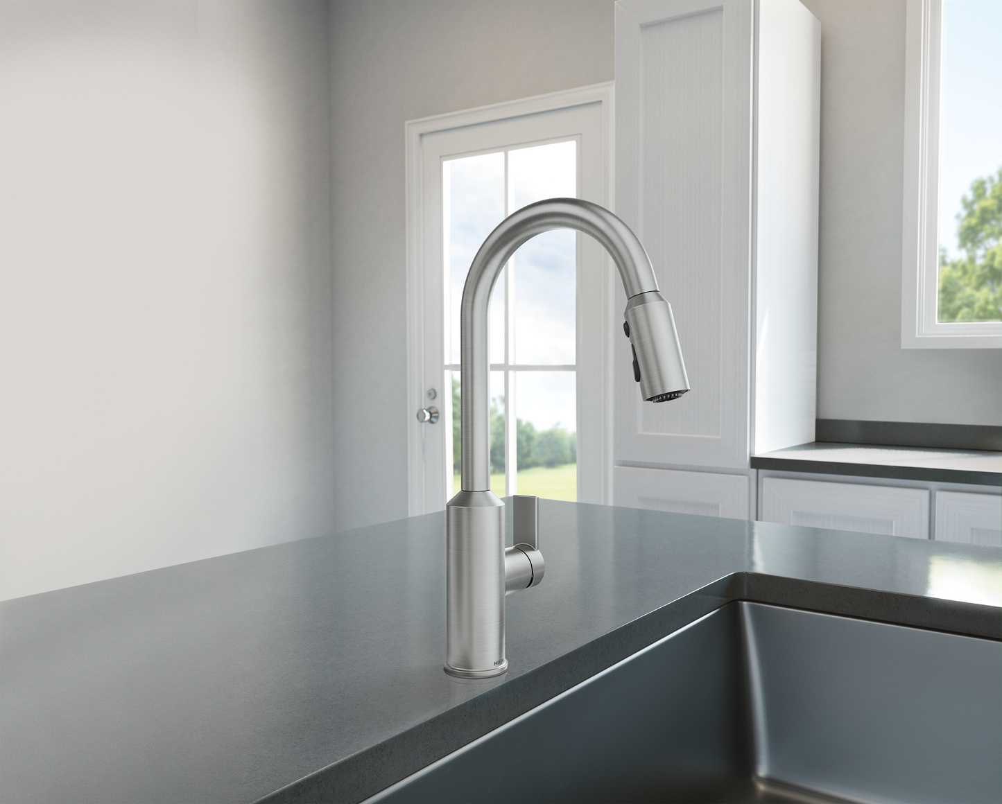 - equipped with the Reflex™ system for smooth operation, easy movement and secure docking of the pulldown/pullout spray head