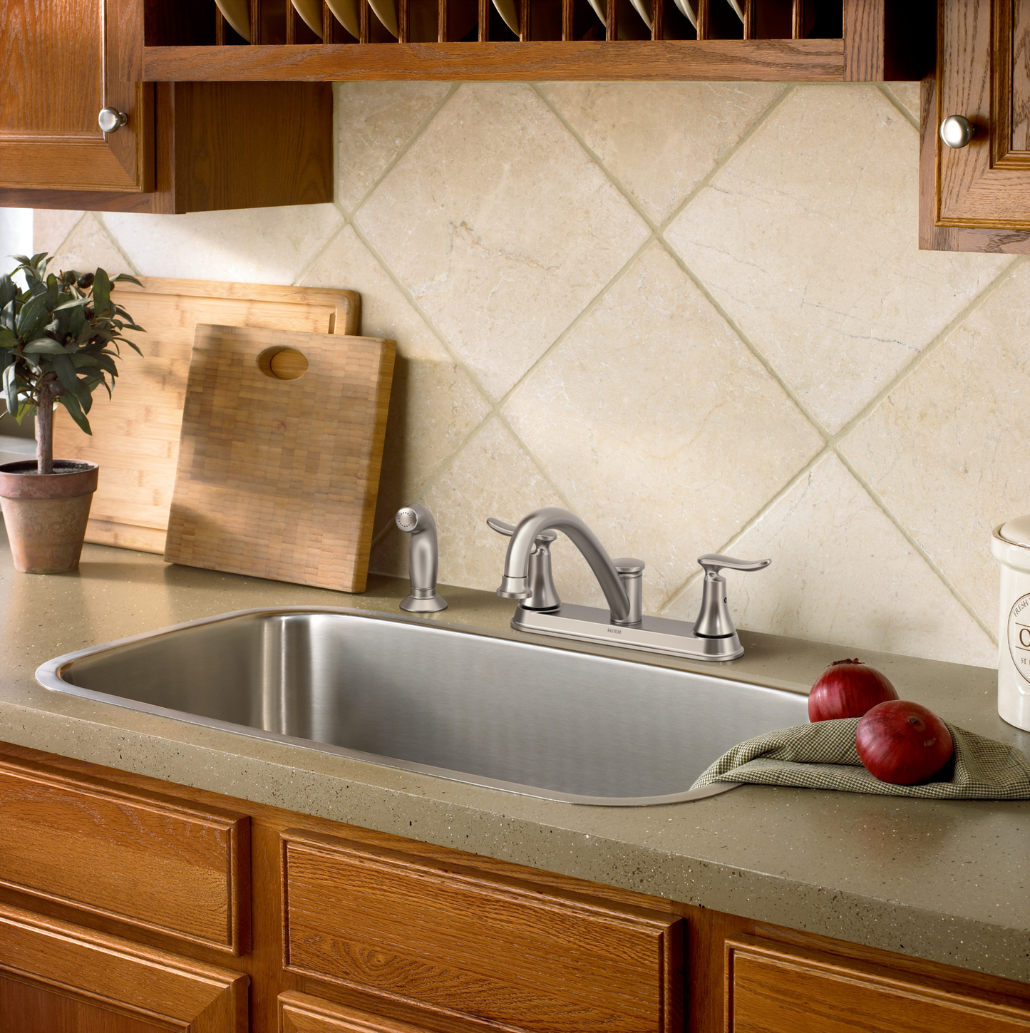 • includes side spray hose for convenient, flexible cleaning at the sink