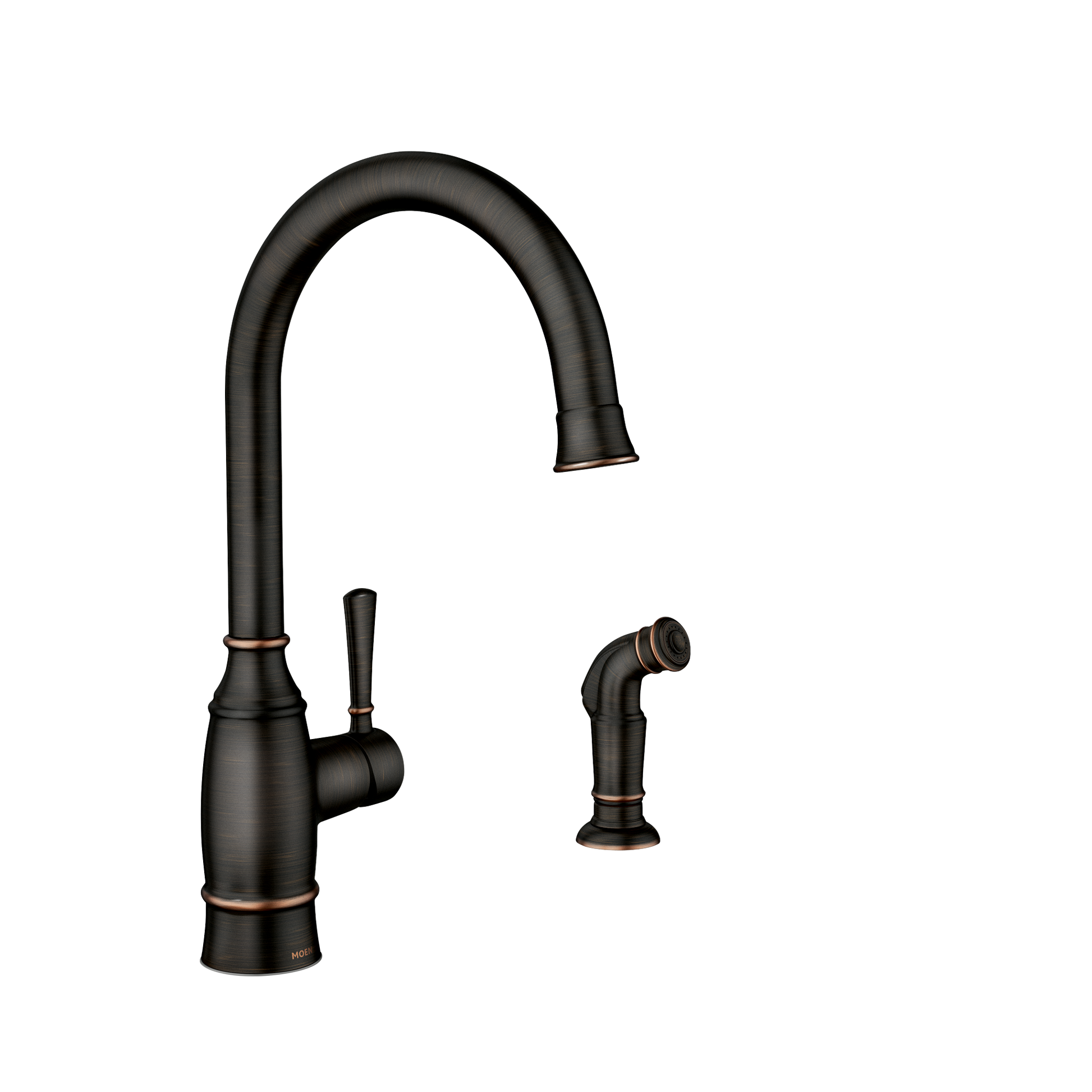 The Moen Noell 1-Handle Kitchen Faucet was designed with attention to detail. The Noell collection embodies elaborate Traditional designs to enhance the style and design of any home. This faucet includes a side spray hose for convenient, flexible cleaning at the sink.
