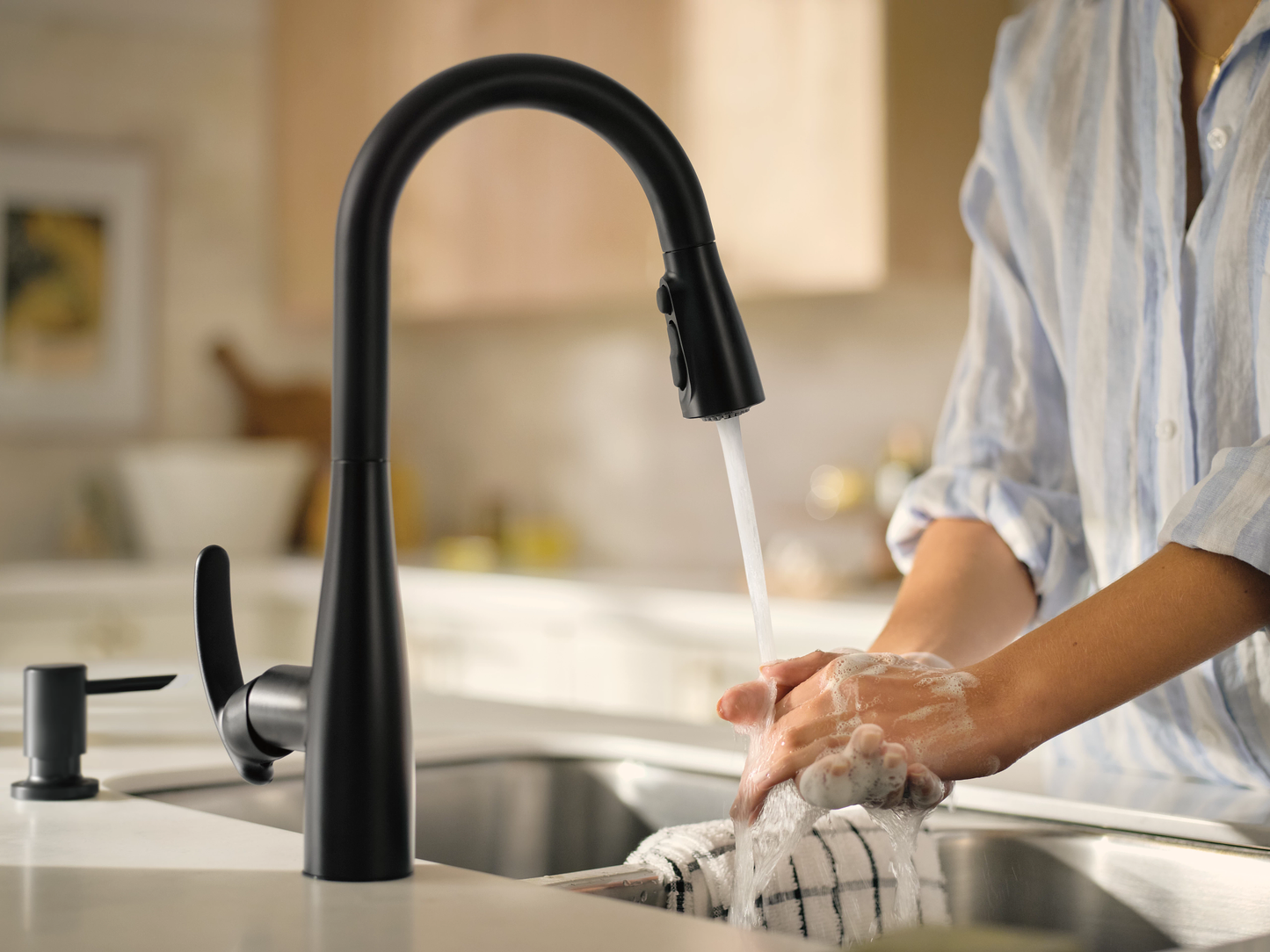- equipped with the Reflex™ system for smooth operation, easy movement and secure docking of the pulldown/pullout spray head