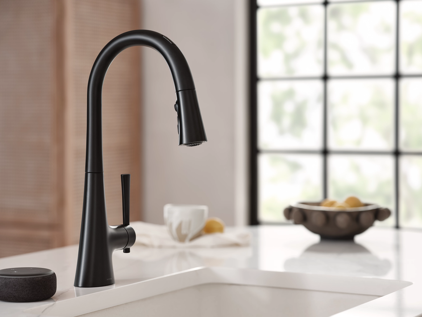 Inspired by natural shapes and organic forms, the KURV pulldown faucet outfits your kitchen with a versatile design to fit any style. The dramatic receptor compliments a tapered handle and flared wand for a simple, yet eye-catching, elegance. Curved lines and a fluid, flowing overall style complete KURV’s design.