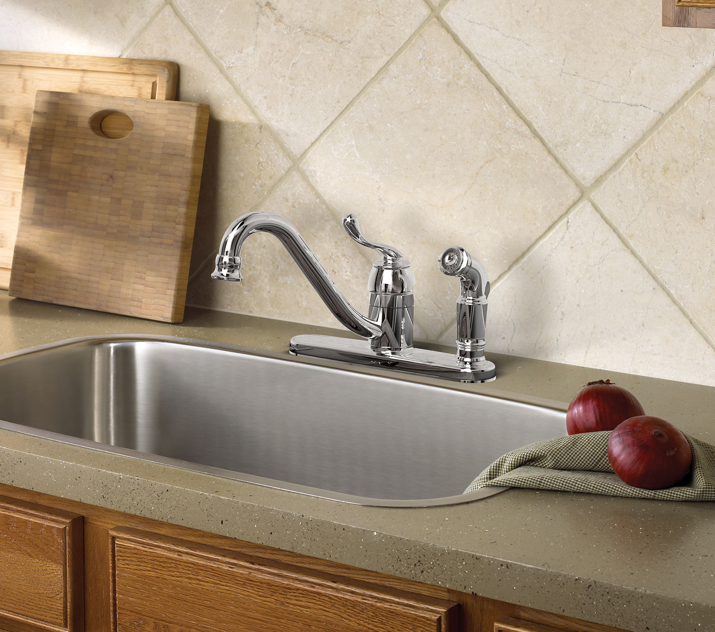 The classic look of the Muirfield collection will add a touch of Traditional flare to your home. Create a relaxed, yet Traditional, style statement in the kitchen with Muirfield faucets and accessories. This faucet with soft geometric lines will truly enhance and personalize your space.