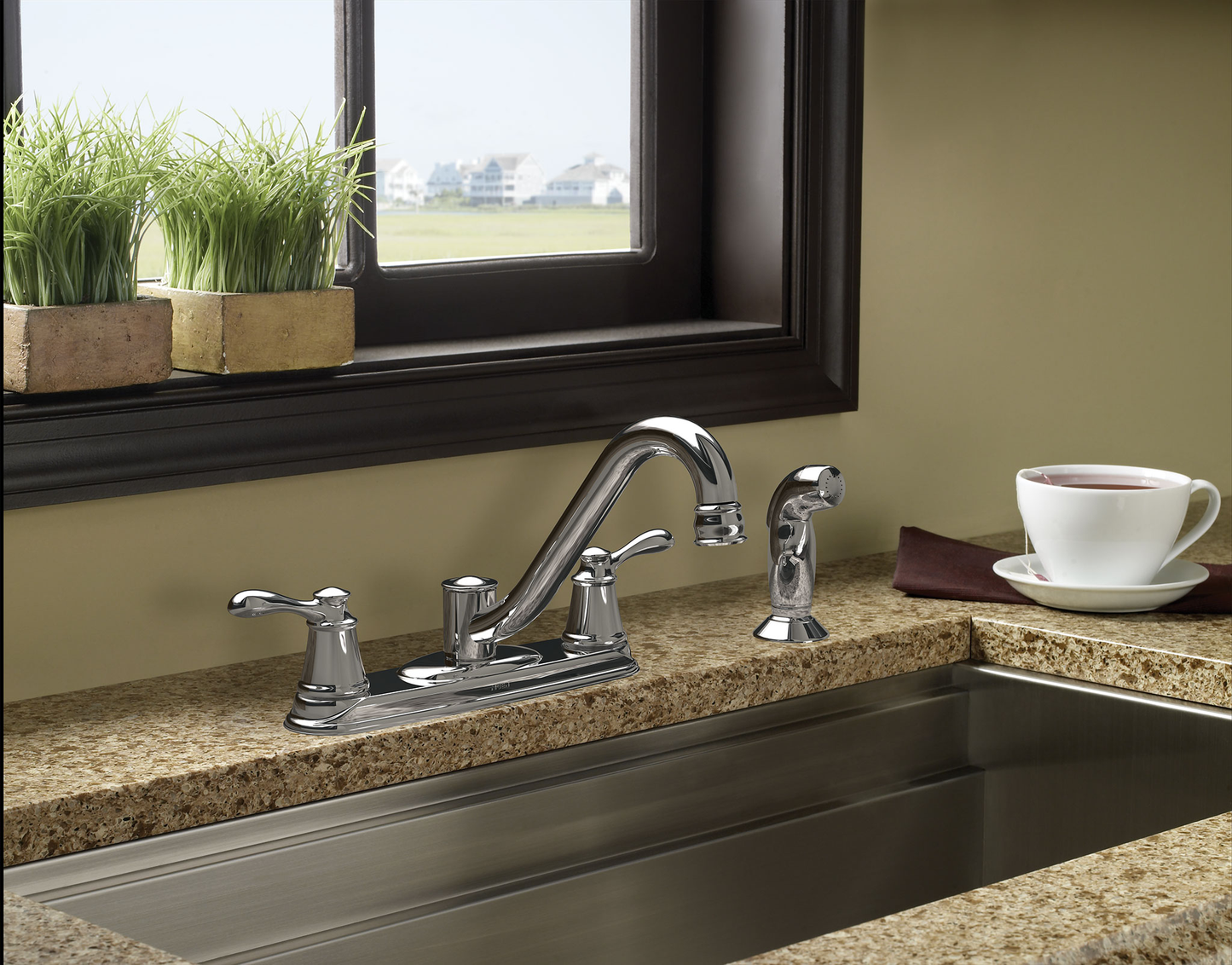 Caldwell Chrome two-handle low arc kitchen faucet