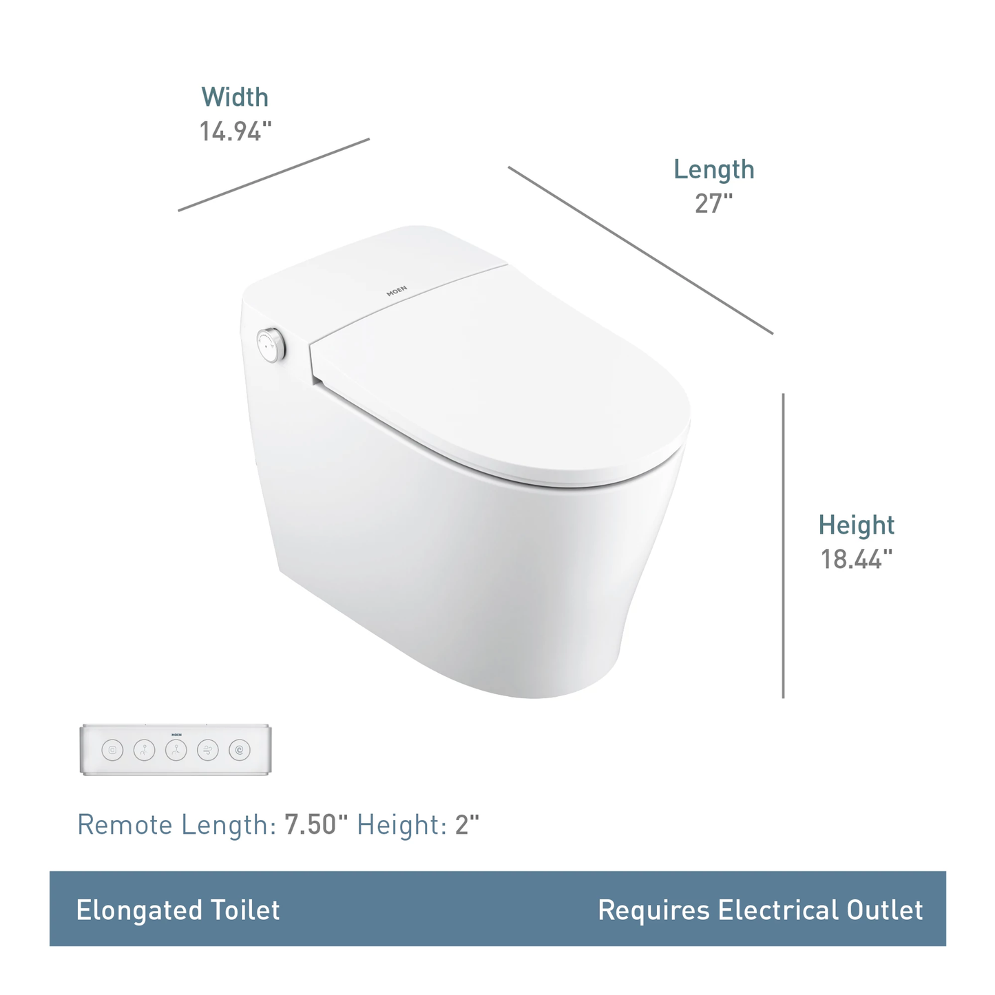 Moen’s 3-Series Electronic Toilets (eToilets) deliver a sophisticated upgrade to daily bathroom routines. The eToilet’s advanced features give you powerful performance all with the push of a button to leave you feeling fresher than ever before. The stylish low-profile design eliminates the bulk from the back of the seat for a sleek and streamlined look. It also offers endless, instantaneous heated water with front and rear wash options, and water pressure and temperature control to customize your experience and offer more comfort. It includes both a manual knob and remote control, which includes a wall-mount dock, and enables you to control the bidet functions of the toilet right from the palm of your hand for added convenience. The 3-series eToilet also includes a nightlight for added safety and includes a deodorizer to keep bathroom fresh. Additionally, eToilets provide the opportunity to cut down on toilet paper use, while enhancing comfort and personal hygiene.