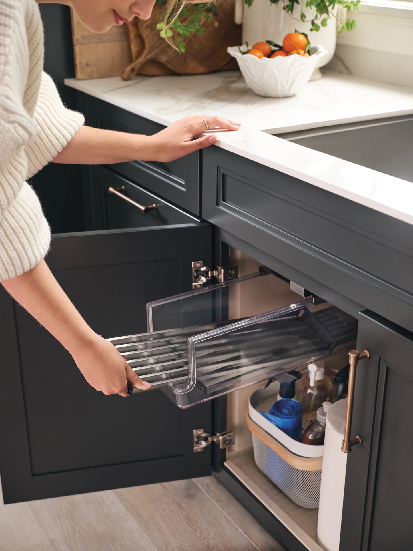 The new Moen® Luxe Chef™ Workstation System Sinks offer the best in customization and efficiency to elevate your culinary endeavors. The workstation sink system allows you to select from three different undermount sinks based on your kitchen’s layout. The workstation system sink is the ultimate kitchen assistant. Our customizable accessory options were created specifically for you and provide only the best experience in the heart of your home. These accessories include a stainless steel colander, stainless steel utensil bin and stainless steel prep bins (sold separately or as a bundle). Acacia or White Oak wood cutting boards are also available for purchase to enhance your meal preparation. There is also an exclusive under-sink pullout storage bin, sink grid, two drying racks and a basket strainer/drain assembly that is included. The sink features a built-in, angled ledge to keep the accessories secure and extend your prep space over the sink as well. Made from durable 16-gauge heavy-duty stainless steel, workstation system sinks are built to withstand even the most demanding chores and the heaviest pots and pans that come with preparing multi-course meals.