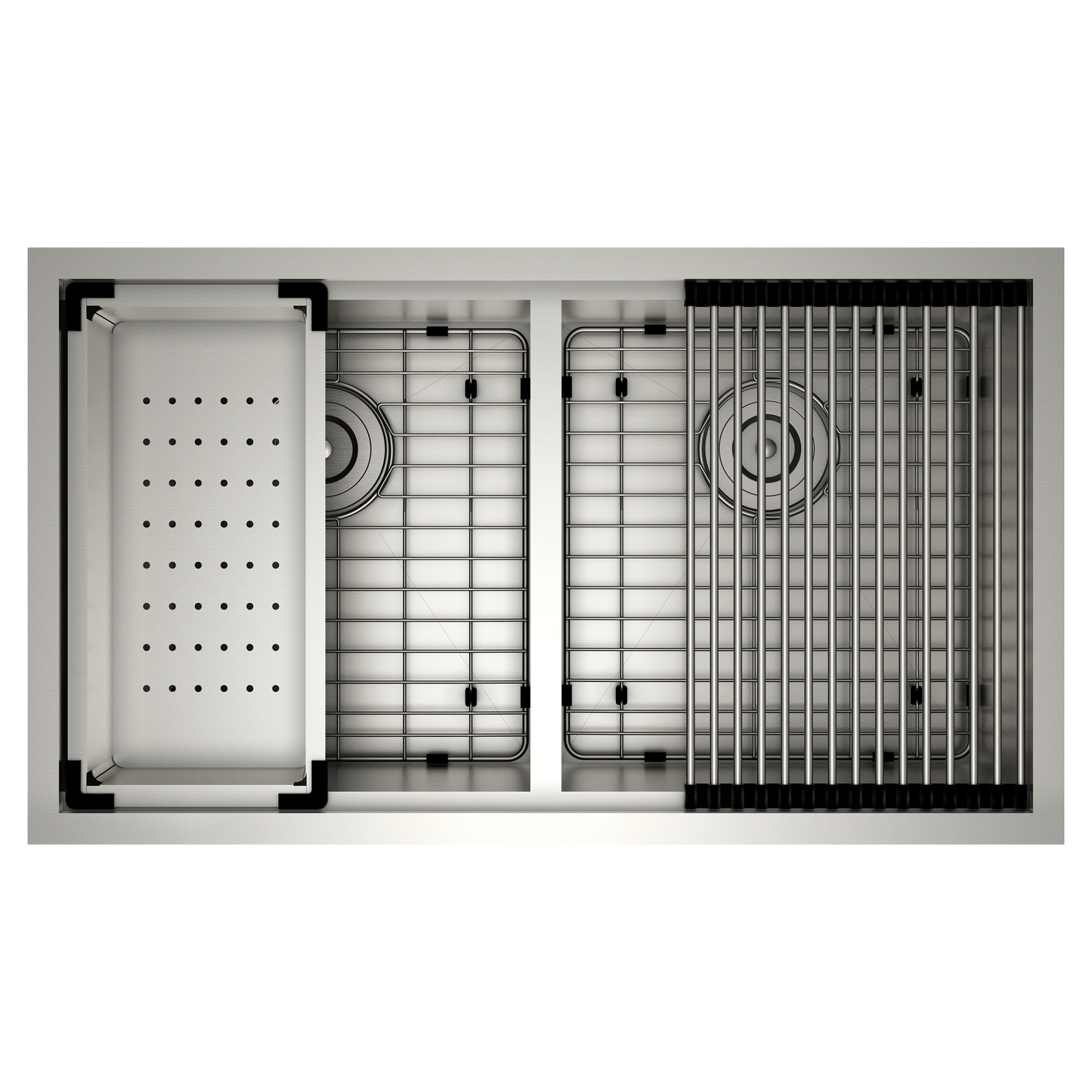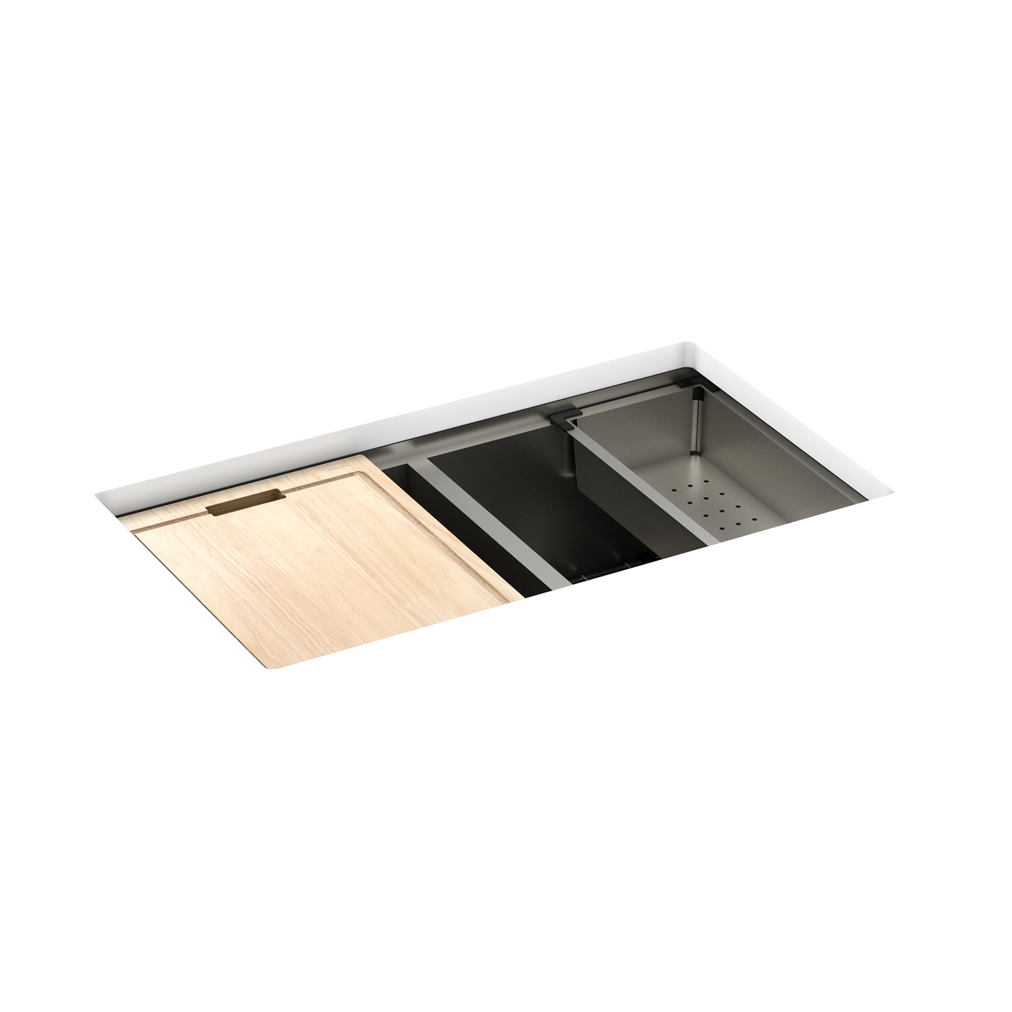 Perfect for the at-home chef who loves to experiment with new recipes, the workstation sinks from Moen help increase efficiency when working in the kitchen. With these sinks, you can transform messy routines such as rinsing, chopping and washing into a contained, all-in-one experience right over the sink and free up valuable counter space. The workstation sinks include a modern stainless-steel undermount sink and high-quality accessories including a bottom sink grid, colander, hardwood cutting board, flexible drying rack and drain strainer/cover. Workstation sinks also include a built-in ledge to secure accessories or slide them over to tailor your workstation to meet your needs.