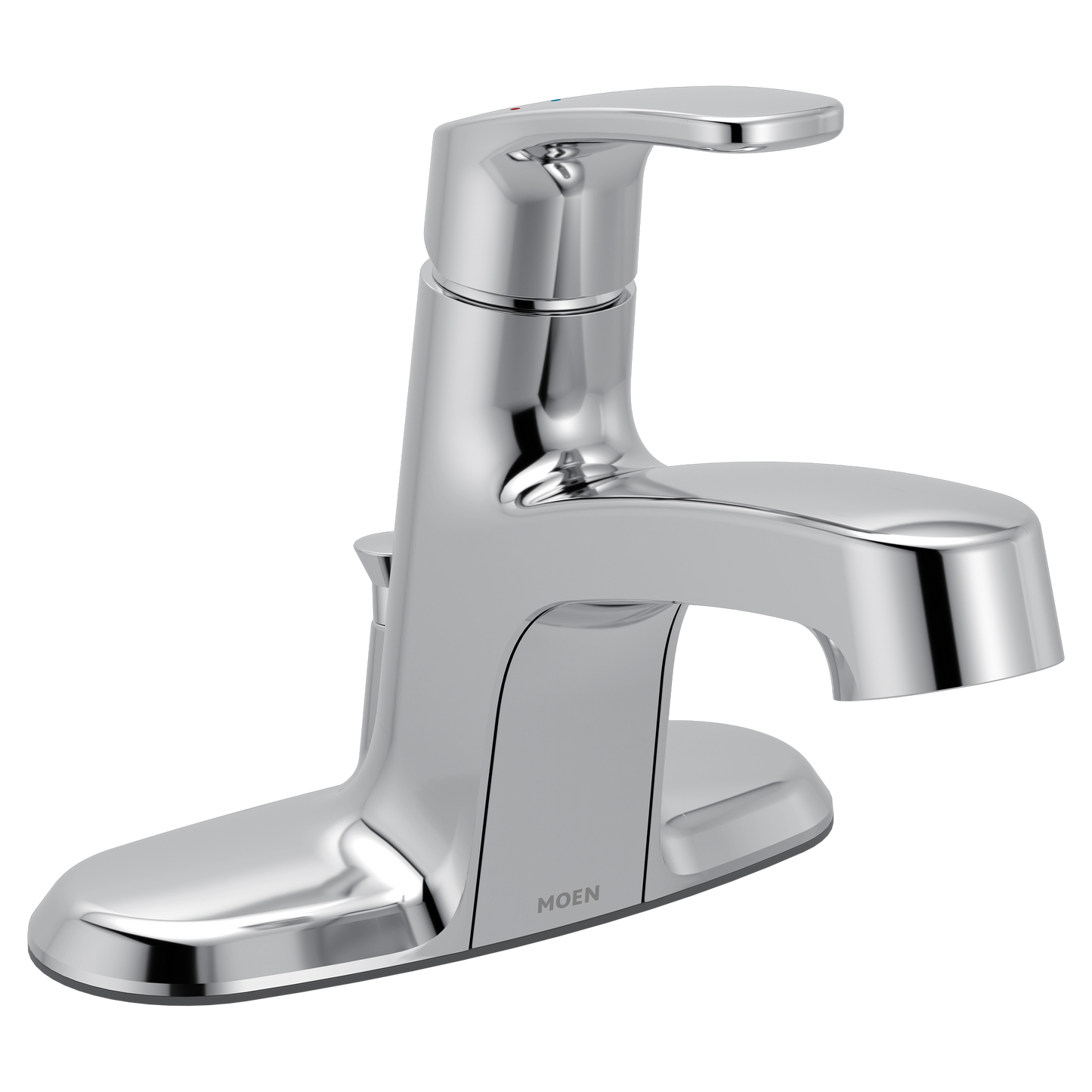 The Chateau single-handle centerset bathroom faucet evokes a transitional feel with its clean lines. This faucet’s subtly curved spout and smooth lever handles offer a sleek design that is perfect for a soft modern bathroom upgrade. Plus, the fixture allows for quick installation and provides exceptional durability. Available in Chrome, a polished, reflective finish that melds with any design aesthetic.