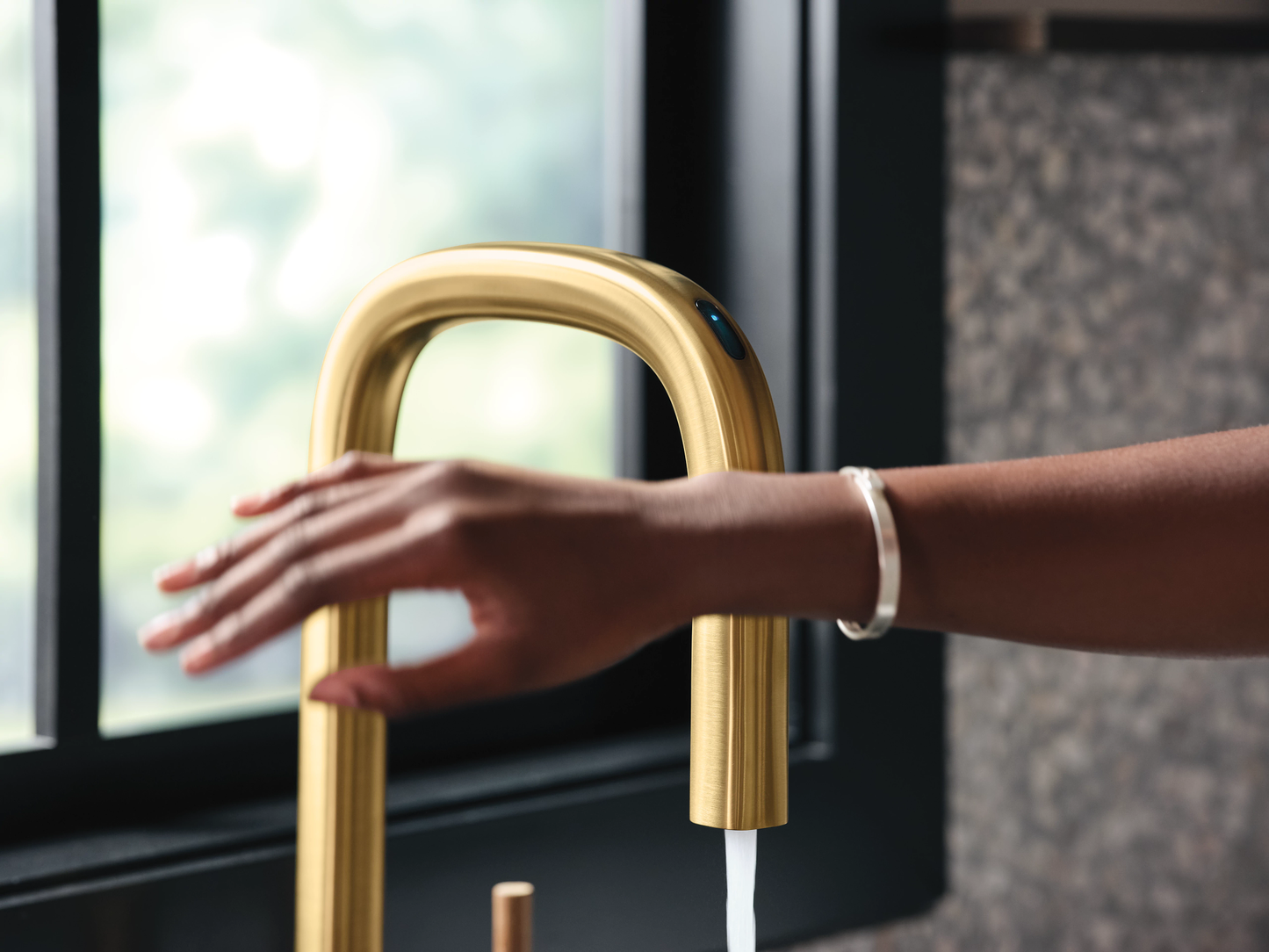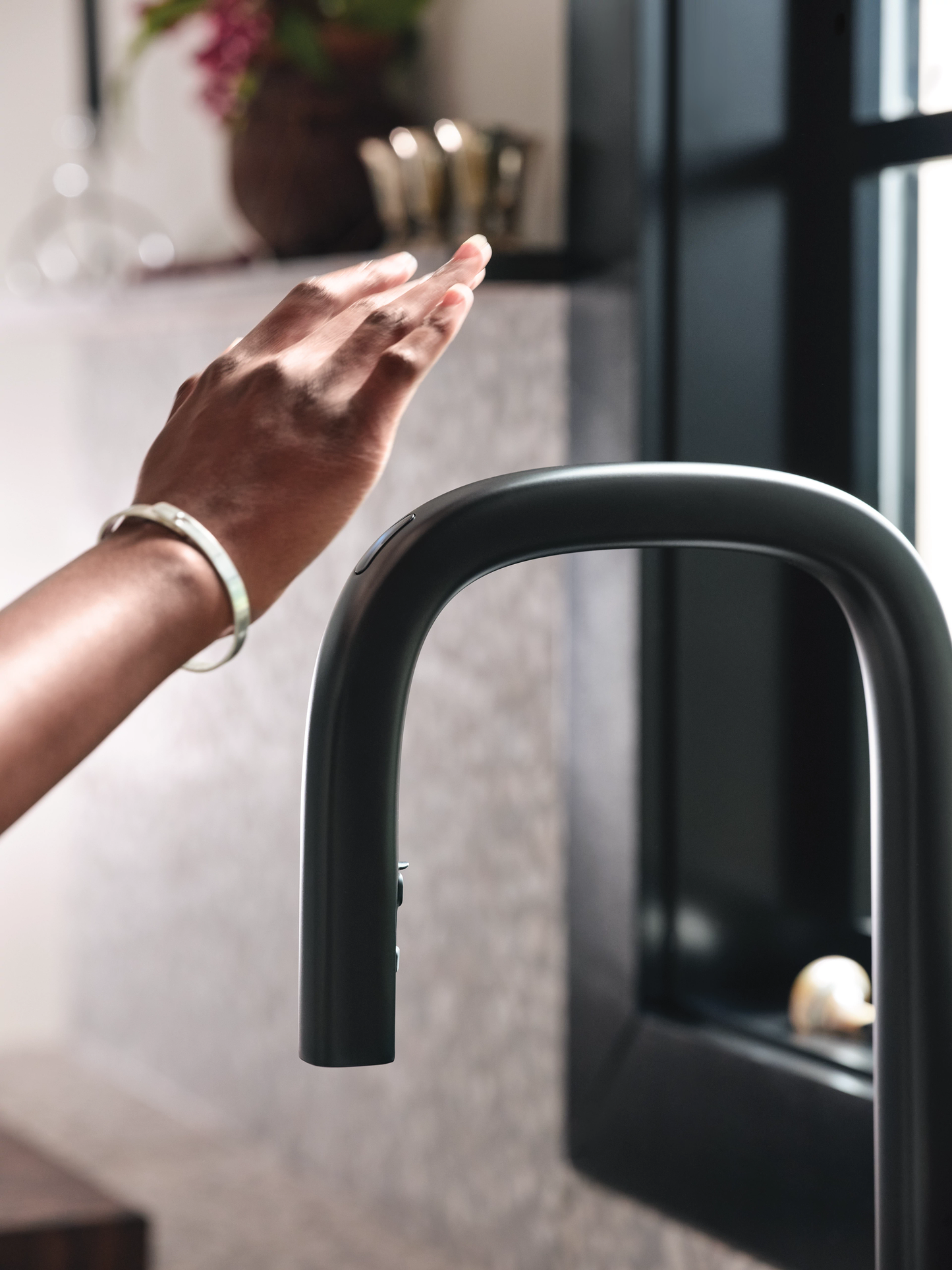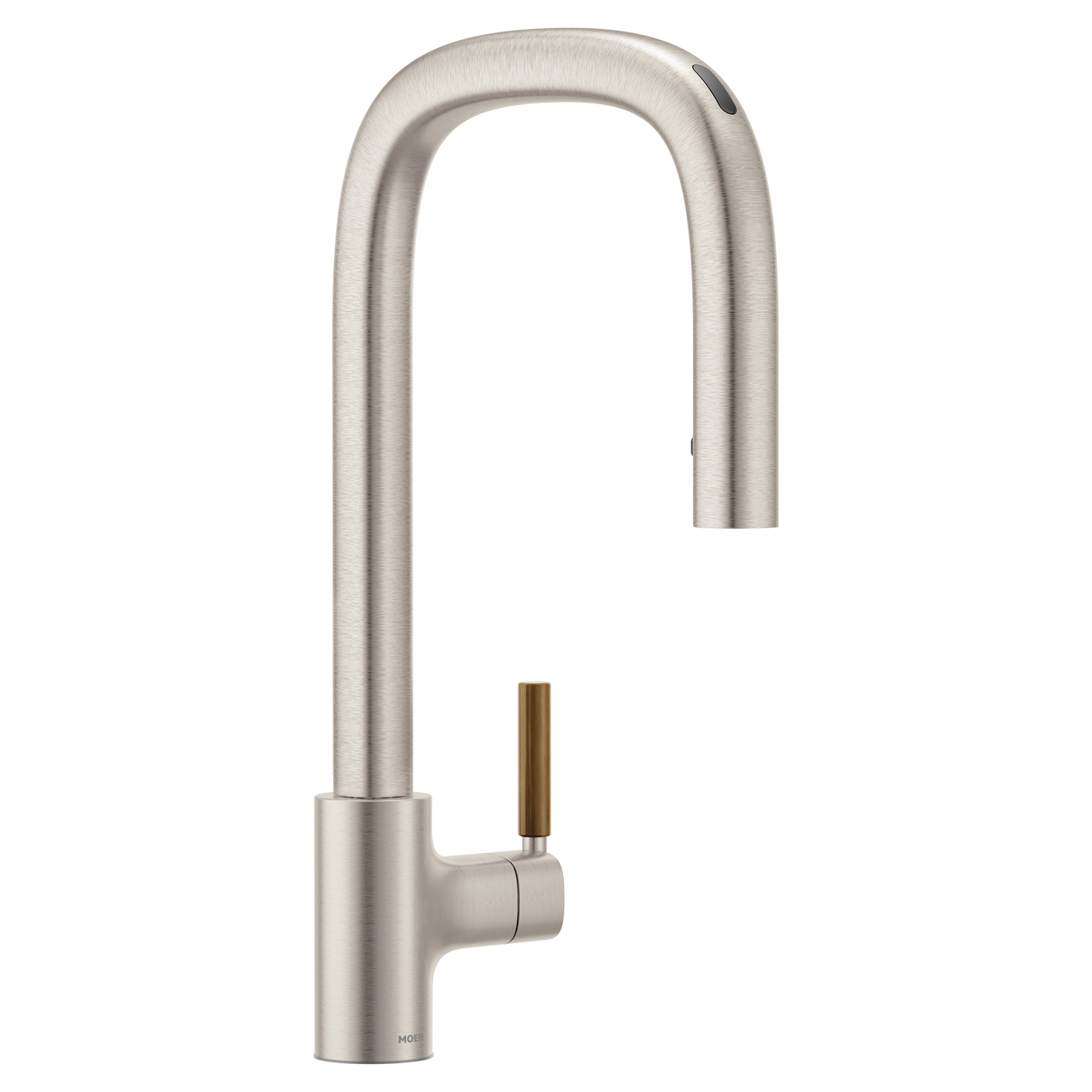 The Moen Smart Faucet with Motion Control adds the perfect blend of intelligent technology and warmth to the modern kitchen. With Tenon, you don’t have to sacrifice style to embrace innovation. The advanced sensor technology allows touchless operation of both the temperature and water flow by using simple hand motions , while the voice activated and app based features give you additional control and personalization. The soft, sweeping curves, organic forms, and teak wood handle add a calming aesthetic to the smart faucet. Available in Chrome, a clean, reflective finish that seamlessly melds with any style.