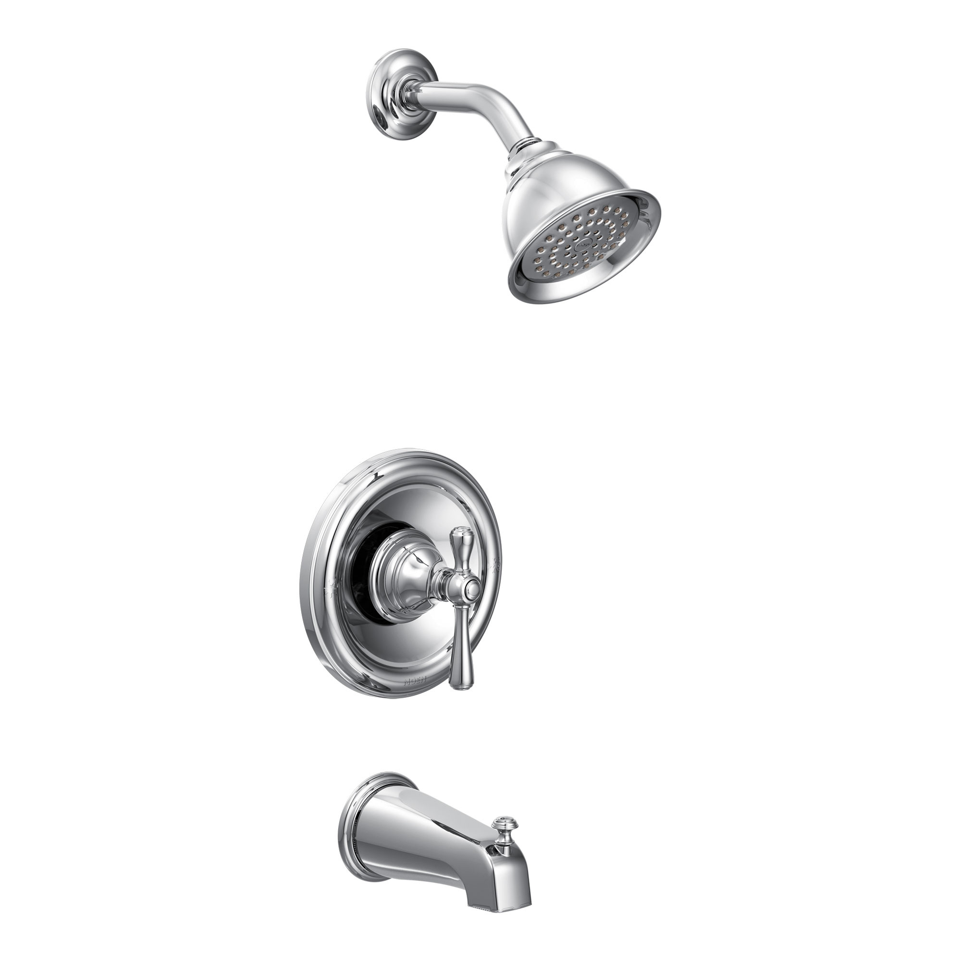 - equipped with the Moentrol® control valve allowing you to adjust both water volume and temperature. pressure-balancing feature helps maintain temperature even when other water sources in the house are in use