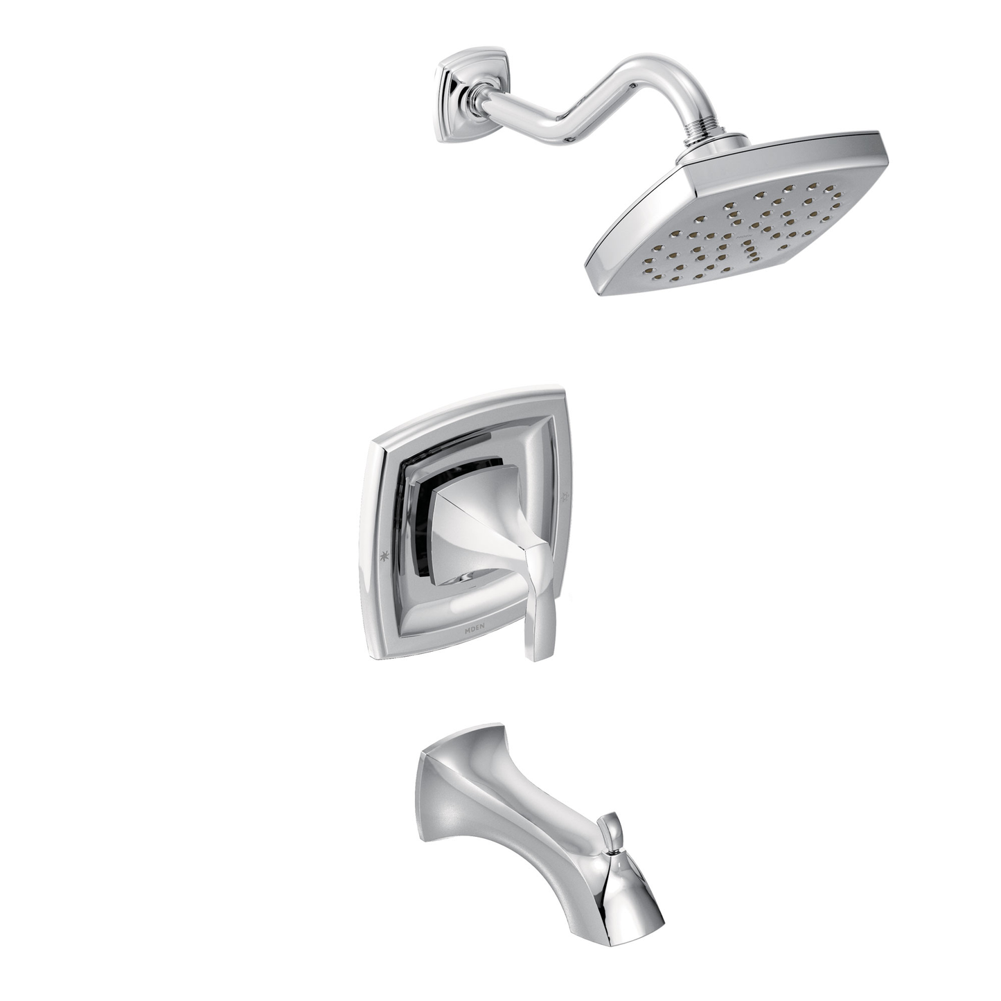 • equipped with the Moentrol® control valve allowing you to adjust both water volume and temperature. pressure-balancing feature helps maintain temperature even when other water sources in the house are in use