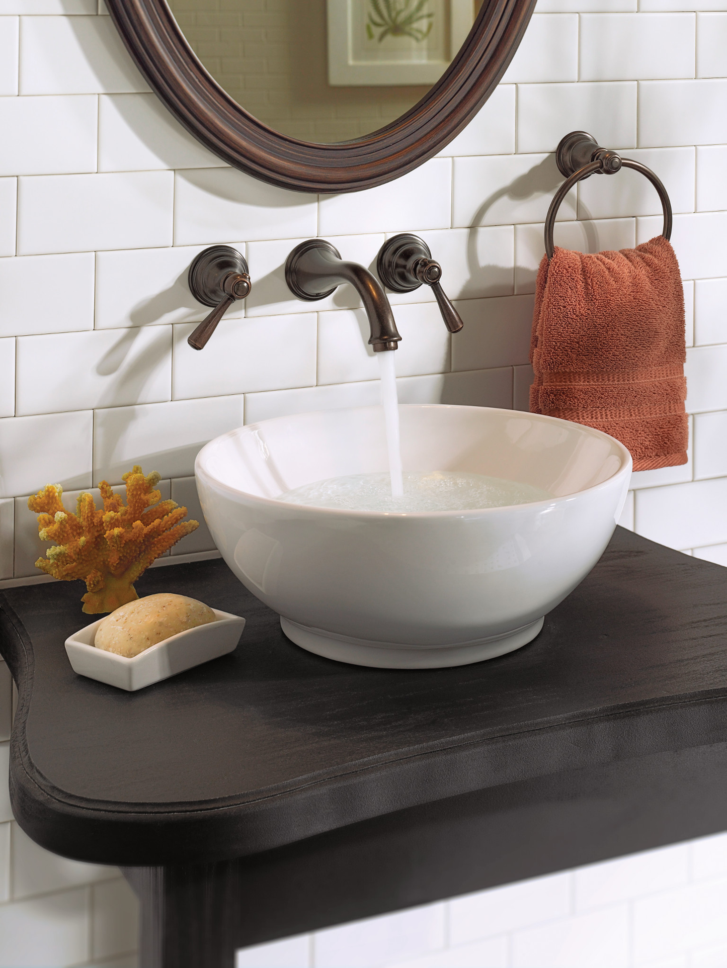 With classic Kingsley, each understated detail--like decorative hot/cold temperature inlays, simple lever handles and arched spout--comes together to create enduring, stand-out style.
