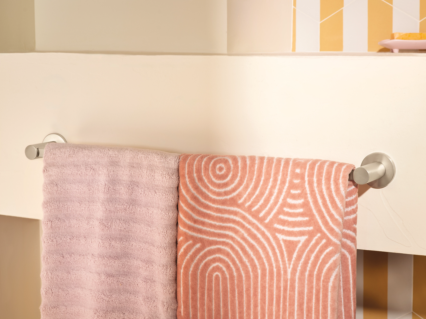 Moen’s Avri™ suite of perfectly matching faucets, showerheads and accessories brings a soft, luxe, modern design to any bathroom. The Avri 24-inch Towel Bar beautifully displays bath linens, seamlessly combining style and function. The delicate rod’s smooth edges and clean lines add a touch of soft modern flare to any space. Available in a shiny, mirror-like Chrome finish for a fresh look and feel.