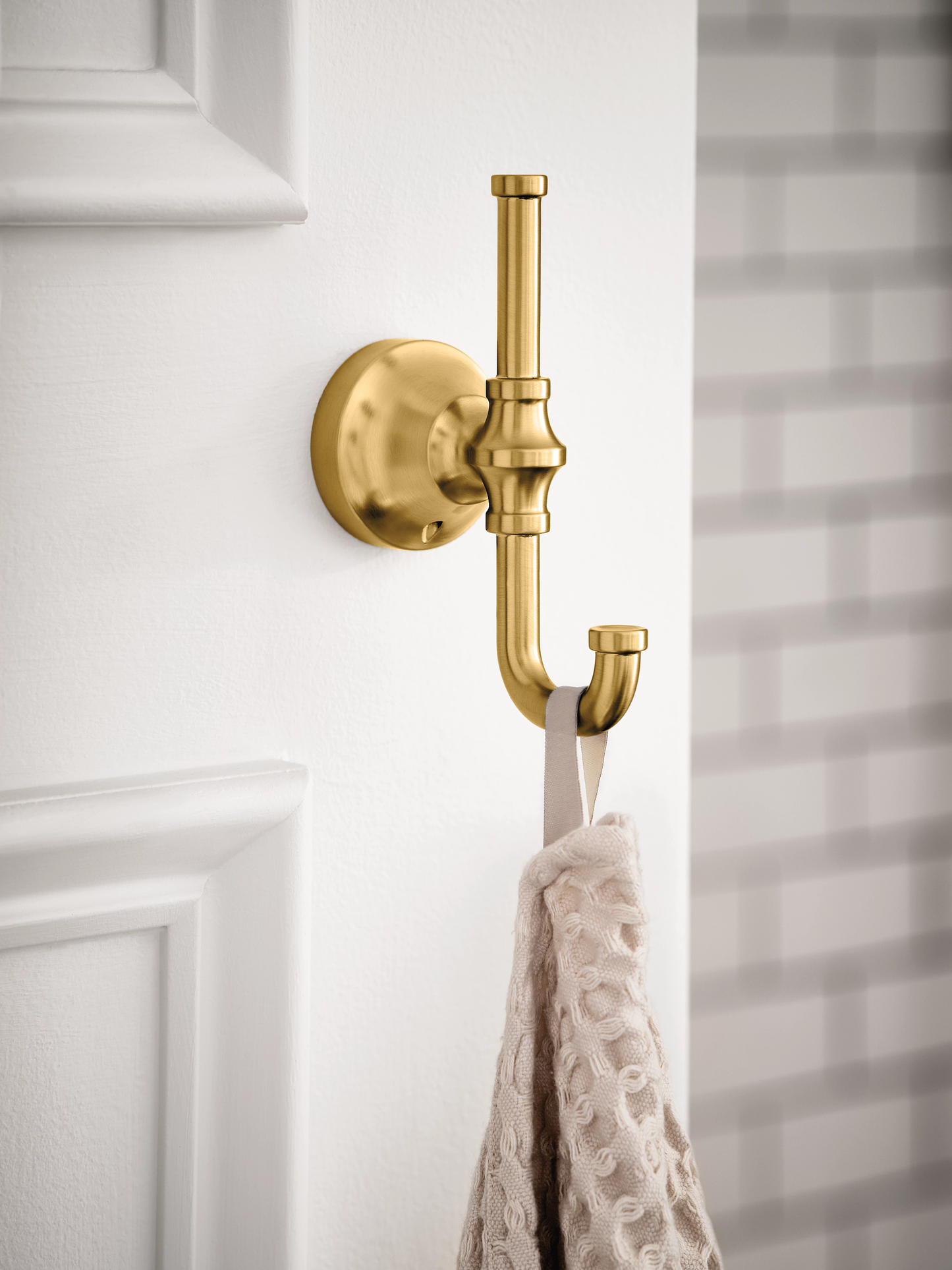 Colinet, is a highly distinctive suite that perfectly complements any bath by providing a wide décor style reach depending on its finish. In chrome and brushed nickel, Colinet is tailored Traditional. In brushed gold, it’s the epitome of glamour. In matte black, it defines industrial chic. Its name is inspired by colonnette, which is a small, slender column in architectural design.